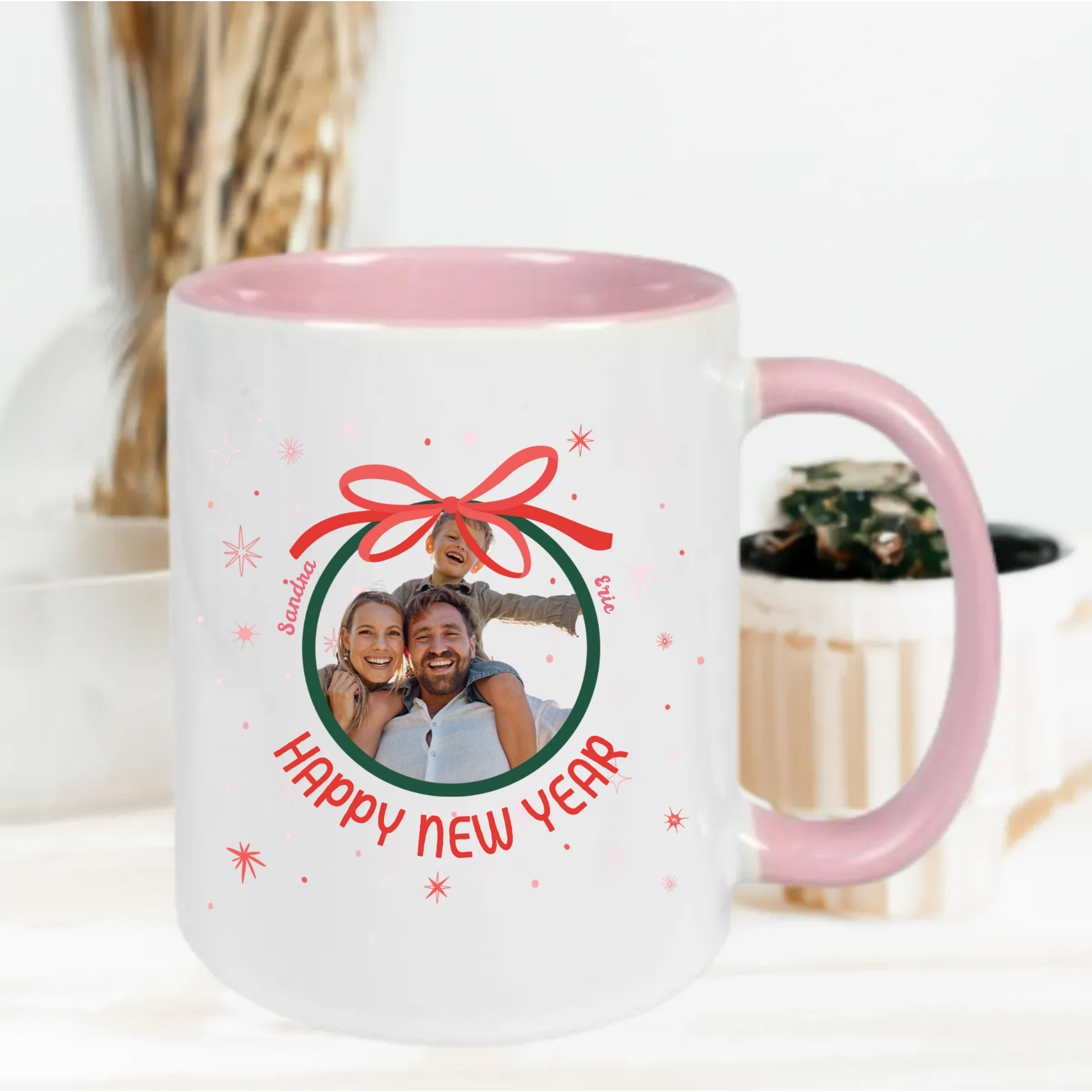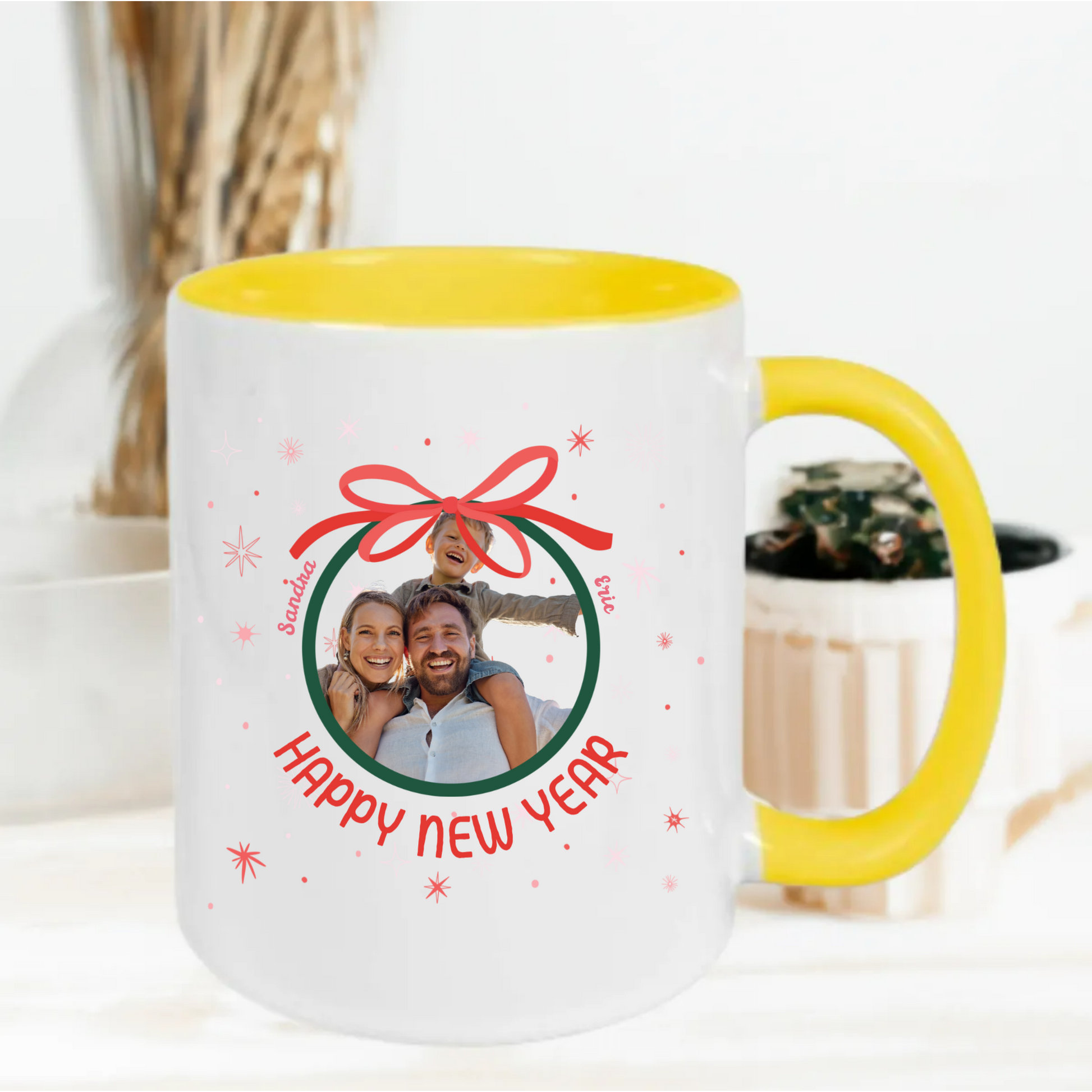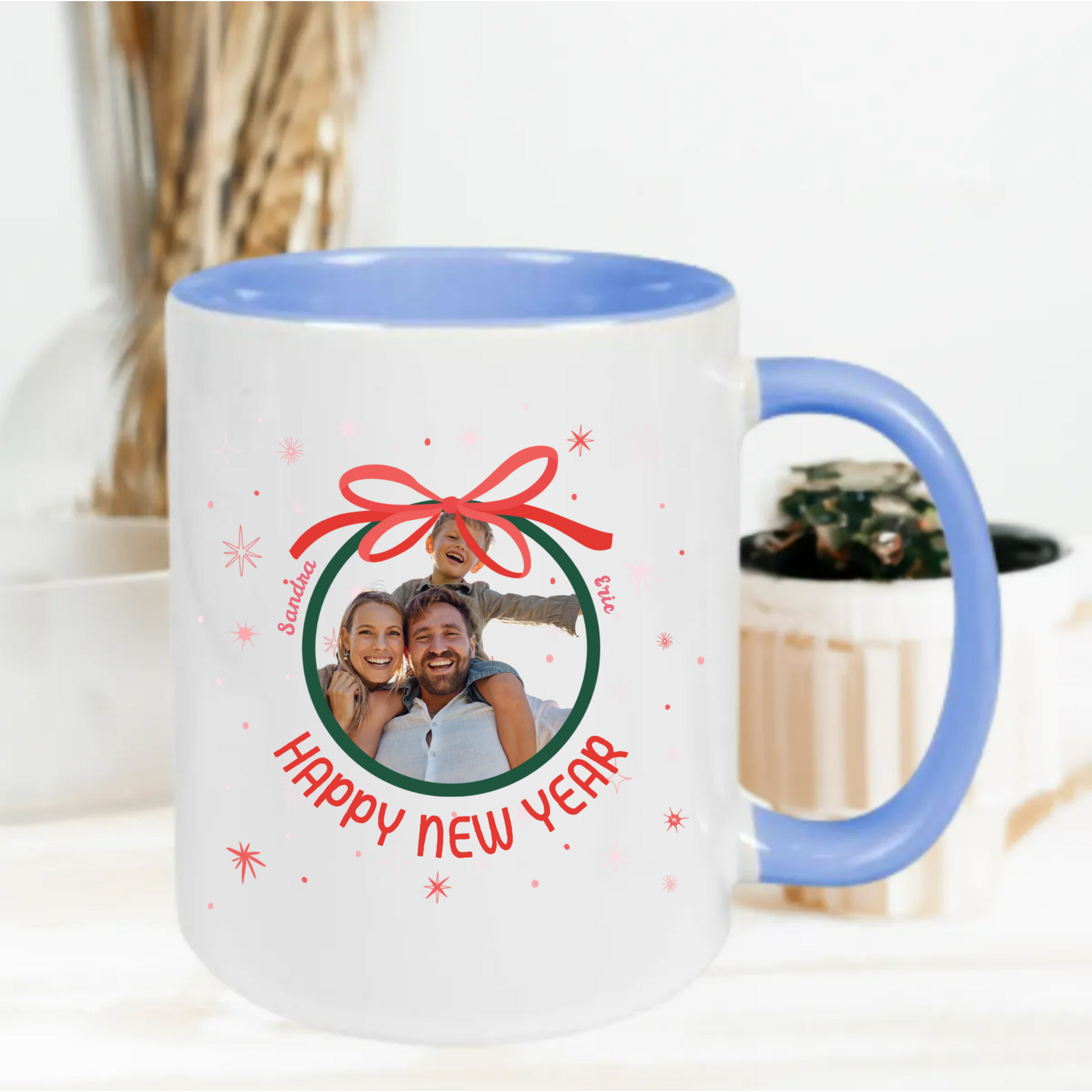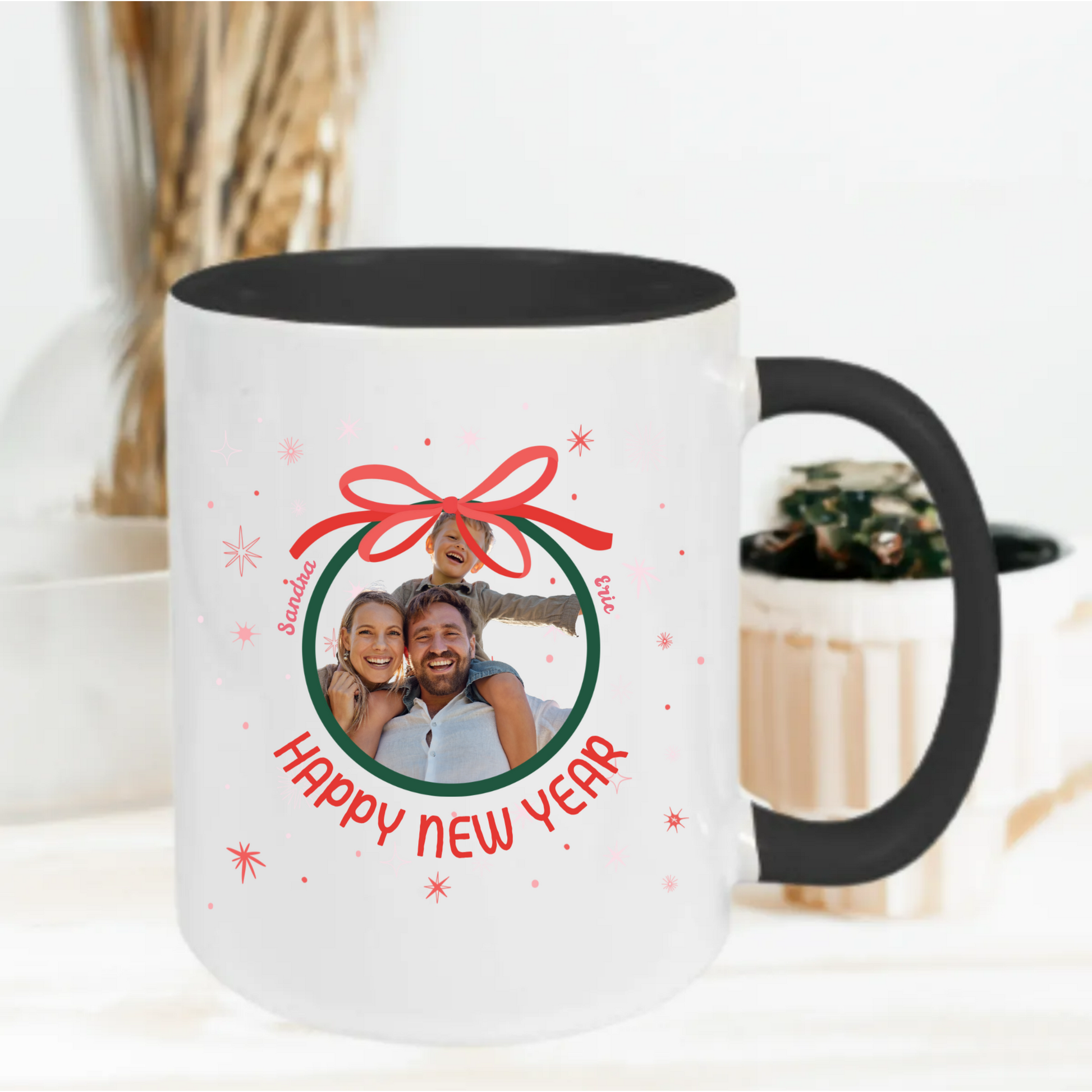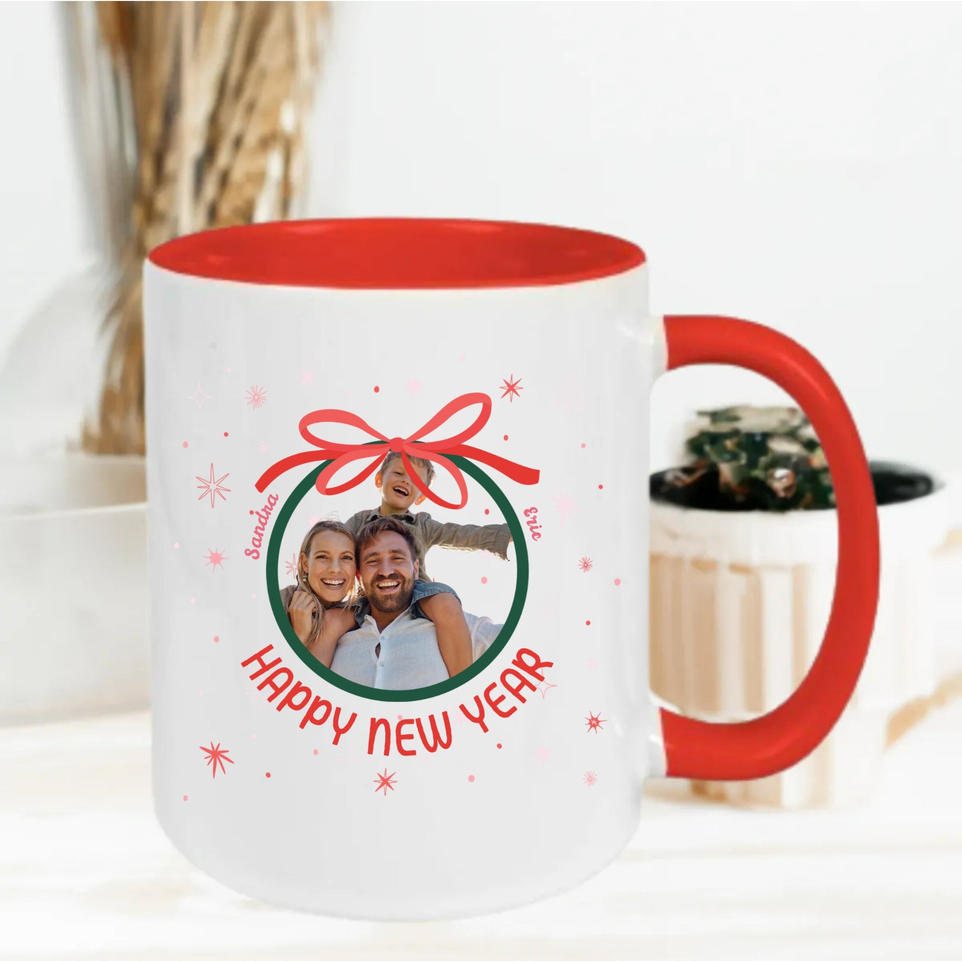 Deze gepersonaliseerde kerstmok is het perfecte en betekenisvolle cadeau voor iedereen die iets unieks wil geven. Voeg simpelweg je eigen foto, namen en tekst toe om een volledig gepersonaliseerde mok te creëren.